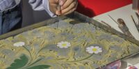 L’ébru est très différent des autres styles de peinture. Il n’est pas facile à apprendre. Tu as un pot avec une substance spéciale. Cela ressemble à de l’eau. Elle est plus huileuse.