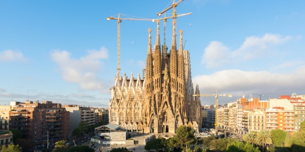 La Sagrada Família de Barcelone est désormais la plus haute église du monde après 144 ans de travaux. Les ouvriers ont récemment installé une grande croix au sommet de la tour centrale, qui culmine à plus de 172 mètres.